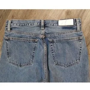 The 70s High Rise Stove Pipe in Mid 70s is our version of the classic 70s-inspired straight leg jean with cropped inseam. Features a 70s vintage inspired wash reminiscent of the decade in rigid denim with a classic button fly, and a raw hem.