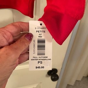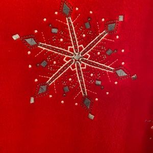 This is a soft cozy velour red snowflake petite pullover. New with tags size small