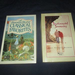 This is a bundle of 2 box sets that have 4 unopened cassette tapes in them from Reader's Digest collections: A Treasure Chest of Classical Favorites and also: Sentimental Souvenirs (Great Romantic Melodies The box sets each have 4 factory sealed cassettes (never opened) and a manual in a box each that have only minor wear on the boxes. They are being sold as a bundle but were never sold together originally.