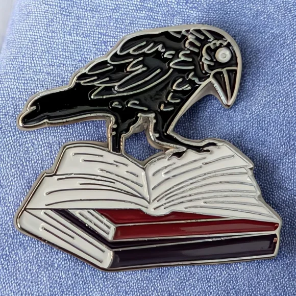 This elegant enamel pin features a black and white bird perched on an open book. Perfect for bird lovers and book enthusiasts alike, it adds a sophisticated touch to any collection.
