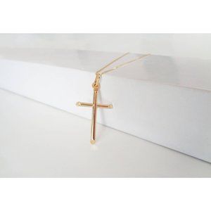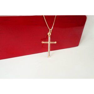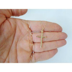 Real 10K Solid Yellow Gold Christian Cross Necklace