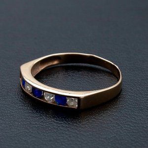 14K Gold Ring adorned with sparkling white and blue CZ stones.