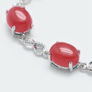 Real Jade Set Cabochons With Eternity Links Silver Bracelet NWOT