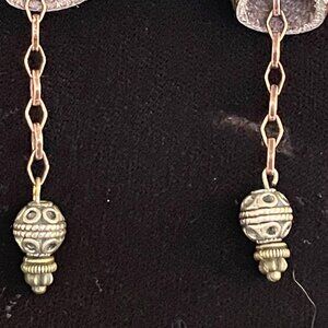Dark Brown soft leather is folded around a bronze chain and beads.