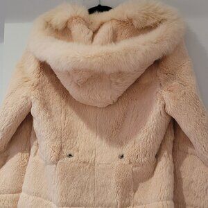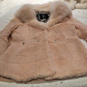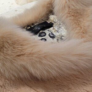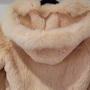 Wrap yourself in luxury with this ultra-soft rabbit fur coat, featuring a real fox fur trim on the hood.