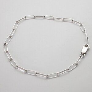 High Quality Solid 925 Sterling Silver Round Paperclip Link Chain Bracelet can be worn alone or
