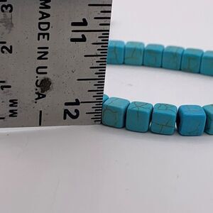 Brand new just in. Real natural turquoise square bead bracelet strung on adjustable cord to fit all sizes. Easy, breezy, natural. Impeccable colour to add a touch of bright to your look. We see it as multiple units stacked together, with other selections from Our Closet (some suggestions shown all listed and priced separately), or with your own favourite bangles and cuffs, but very cute all on its own or stacked with multiples ( be sure to ask for desired number when ordering- 3 available in blue, 2 in white). Great gift for BFFs or family members and suitable for all genders Fun travel, beach or summer wear, transitions perfectly to cool weather bulky knits, leathers and jeans. About 1/3 inch square beads of solid turquoise and also available in a white option, listed separately. Fresh and Fun from Lemon Squeezy Shop🍋