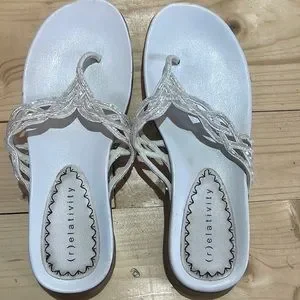 Relativity Sandals, Colour White, Size 6.5, Beautiful Beads, Small But Heeled, And in excellent used condition!