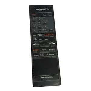 This Realistic Model 82 Universal Remote Control offers easy operation for multiple devices, featuring a sleek black design. Ideal for enhancing home entertainment setups.
