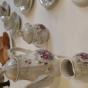 6 saucers 6 expresso coffee cups. Resembles mother of pearl.
