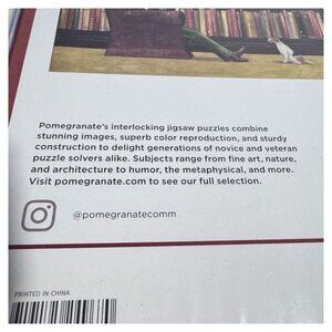 plastic wrap has a tear in the front but still sealed otherwise. Unwind with the Rebecca Campbell "Do Not Disturb" 1000-piece jigsaw puzzle by Pomegranate, a delightful challenge for puzzle enthusiasts. Featuring a charming library scene that captures the serene essence of a quiet reading sanctuary, this puzzle promises hours of engaging activity and a satisfying completion.Crafted from high-quality cardboard, the puzzle pieces fit snugly to create a seamless and vibrant image once assembled. With no custom or modified parts, this puzzle is designed for ages 3 and up, making it a perfect choice for family gatherings or a peaceful evening at home. Enjoy the intricate detail and rich colors that bring Campbell's artwork to life.