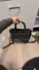 Elegant black leather handbag with silver accents. Perfect for any occasion.