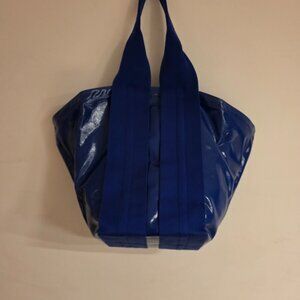 blue tote bag, cobalt handbag, statement tote purse, large shoulder bag, glossy blue handbag, structured tote bag, work travel tote, everyday carryall bag, bold color handbag, modern tote purse