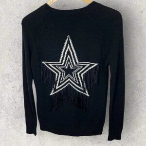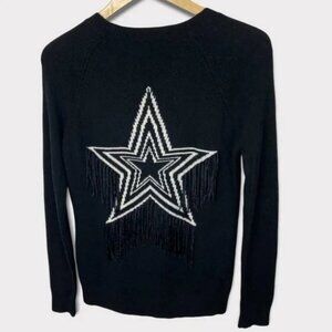 Rebecca Minkoff Cashmere Blend Knit Fringe Star Sweater Black Western Size XS