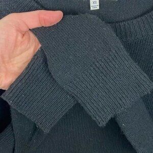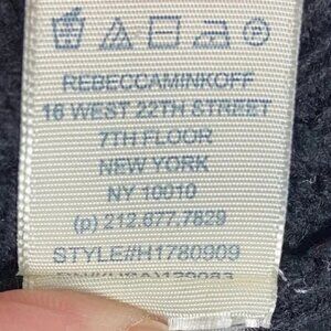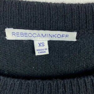 Rebecca Minkoff Women's Premium Sweater with Fringe Star in Black and Women's Size XS. Long sleeves. Crew neck. Ribbed cuffs. 33% Viscose, 23% Nylon, 20% Wool, 20% Cotton and 4% Cashmere. Retails for $178 USD (approximately $248 CAD). Very good pre-loved condition. No visible flaws. Note that model photos in different colour to show fit.