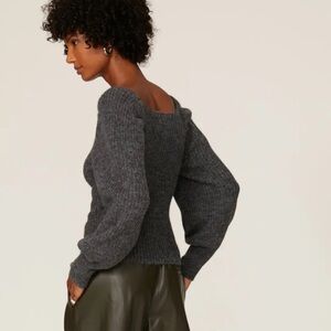 Rebecca Minkoff Grey Wool Puff Sleeve Pixi Sweater