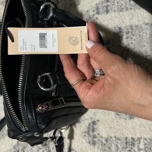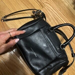 Hello, it’s 8 inches long and 6 inches high and 2.5 inches wide. Holds a lot for a small bag. Very pliable soft leather.