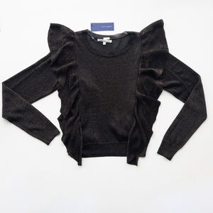 Rebecca Minkoff black / metallic gold sweater top with frill detail