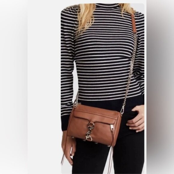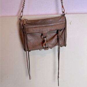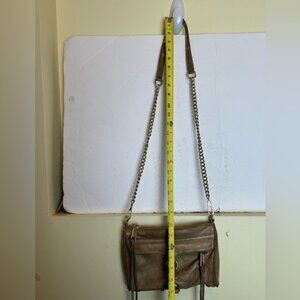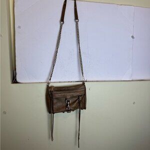 Rebecca Minkoff Mini MAC Leather Crossbody Bag Shoulder Chain Strap Tan Zip Tote