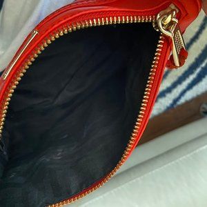 Hi there, is there any discolouration or fading of the leather or zippers or anything? Do you have the dust bag? Is this a red orange colour?