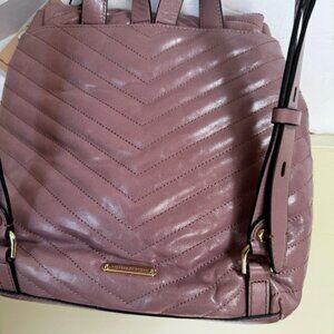 Rare Rebecca Minkoff Edie Flap Quilted Leather Backpack in Mink pink color