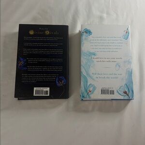 Set of two books by Rebecca Ross: Divine Rivals and Ruthless Vows. One book features a black cover, the other a white cover.