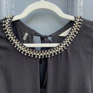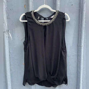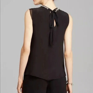 Rebecca Taylor Black Sleeveless Silk Blouse With Rhinestone Collar, size 12