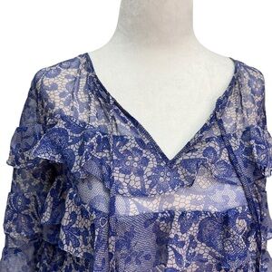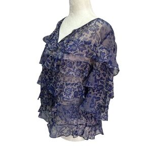 Rebecca Taylor Blue Silk Short Sleeve Ruffle Tie Front Blouse Size S