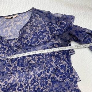 Rebecca Taylor Blue Silk Short Sleeve Ruffle Tie Front Blouse Size S