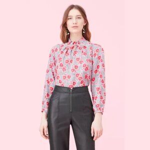 Rebecca Taylor Coral Fleur Long Sleeves Silk Blouse