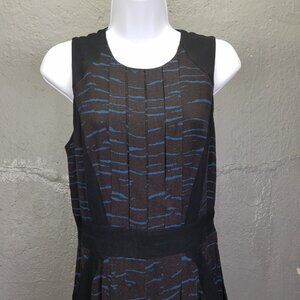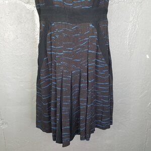 Rebecca Taylor Dress Women 6 Black Blue Stripe Sleeveless Pleated Pockets Mini