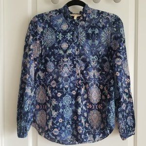 Rebecca Taylor floral print ruffle collar peasant top/blouse