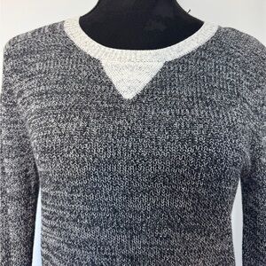Keywords: Rebecca Taylor peplum top, knit ruffle hem blouse, contrast trim sweater, workwear top, feminine long sleeve top, designer knit blouse