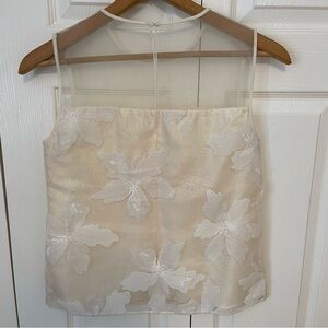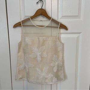 Rebecca Taylor Organza Embroidered Sleeveless Cream Floral Blouse size XS