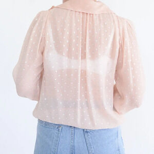 Rebecca Taylor Peach Silk Polka Dot Metallic Tie Neck Ruffle Long Sleeve Blouse2