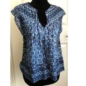 Rebecca Taylor Peasant Blouse Womens 0 Blue Sleeveless Paisley Silk Cotton Top