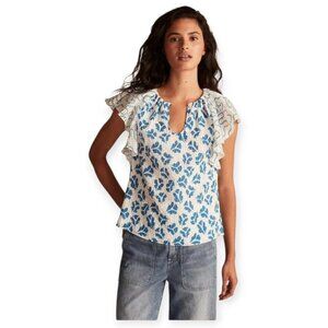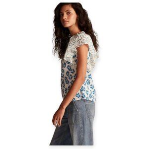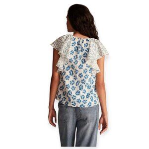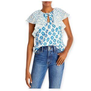 Rebecca Taylor Perla Ruffled Silk Blouse XS Snow Combo