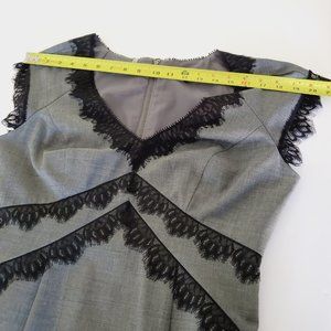 Rebecca Taylor Sheath Dress Virgin Wool Lace Trim Feminine Chic Cap Sleeve 12