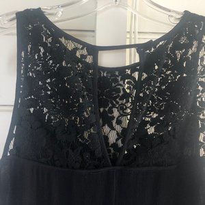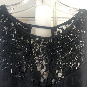 Lace inserts down the sides of the body ending at a slit on each side of the item. The back is a sweet keyhole detail.