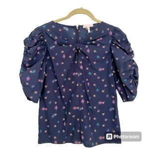 Rebecca Taylor Puff sleeve floral blouse. Back zip entry, key hole at front as seen in pic, light weight fabric, feminine piece.In very good pre-owned condition. The second photo is not the exact blouse, just for showing style and how to wear.