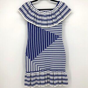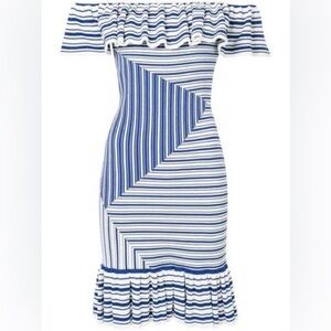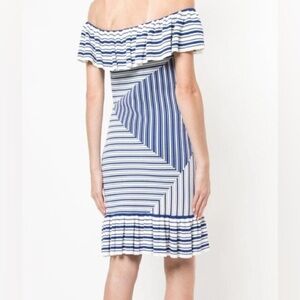 Rebecca Vallance Corsica Blue and White Stripe Off shoulder Mini ruffle dress 2