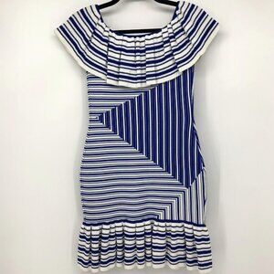 Rebecca Vallance Corsica Blue and White Stripe Off shoulder Mini ruffle dress 2