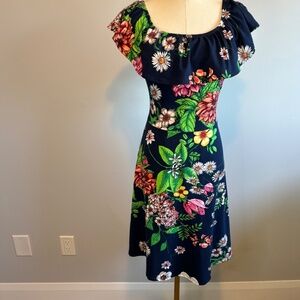 Rebel Sugar by Simons, Tropical Floral, Navy Ruffle Dress, Fit & Flare, SZ L