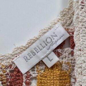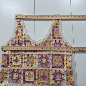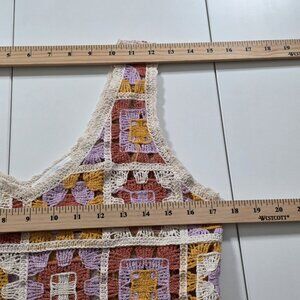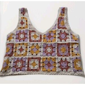 Rebellion Again Crocheted Top Women L Grandma Square Sleeveless V Neck Crop Boho