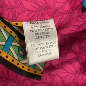 Black lace trims the arm openings and the sides of this fun, bright dress