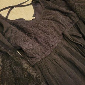 Rebellion Witchy Black Dress with Lace and Tie Front Detail Size S
