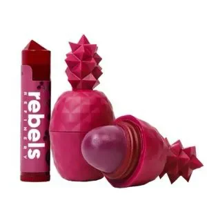 I have a light pink pack with both a pineapple and a stick lip balm that has a strawberry mango flavour. Another deep magenta coloured pack with both a pineapple and a stick lip balm that has a black cherry flavour. A single light purple pineapple balm with winterberry flavour. And a pastel light teal colour cactus shaped lip balm with a stick lip balm that has a cucumber-watermelon flavour.