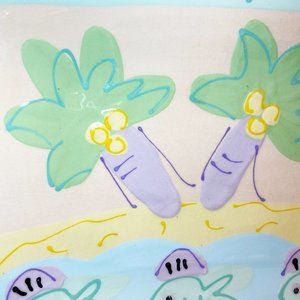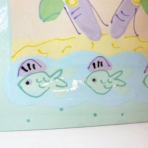 Rectangular Ceramic Decorative Serving Plate Beach Fish Palm Trees Themed