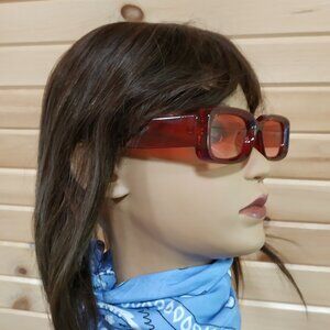 Rectangular Retro 90's Narrow Glasses, Pink Gradient Tint