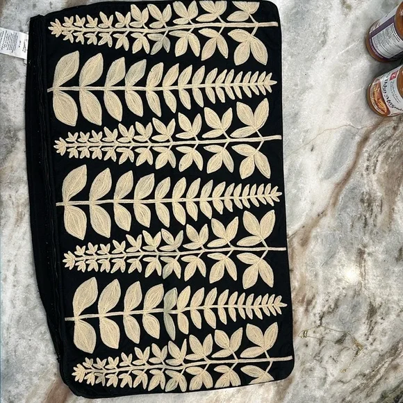 Beautiful cotton throw pillow no flaws zipper enclosed thick embroidery 15 by 25 inch Pottery Barn